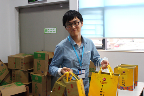 菖蒲高懸飲雄黃,竹葉紅豆粽子香,端午臨近,濃濃的節(jié)日氣氛彌漫華訊方舟,6月6日下午,由公司行政部精心準(zhǔn)備的一箱箱“三全龍舟粽”抵達(dá)公司階梯會議廳,各部們派代表領(lǐng)取集團(tuán)送給員工們的節(jié)日禮物,讓他們感受到家的溫暖,一箱箱龍舟粽,一張張開懷笑臉,粽香情更濃。