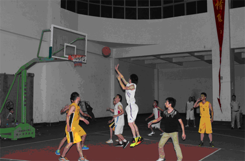 在公司人事部的組織下,光明分公司和總部要開始一場精彩的籃球比賽。時間定在9月6號晚上的7點。下午5時,驅車向總部出發啦!7點的時候,比賽正式開始.大家相互團結,默契傳球,開局